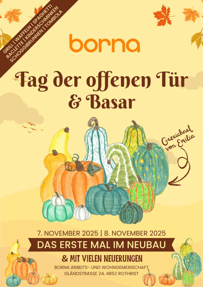 Die Borna Arbeits- und Wohngemeinschaft bezweckt die Aufnahme, Betreuung und Gesundheitsförderung von Menschen, die im Bereich der psychosozialen Eigenständigkeit Unterstützung benötigen.